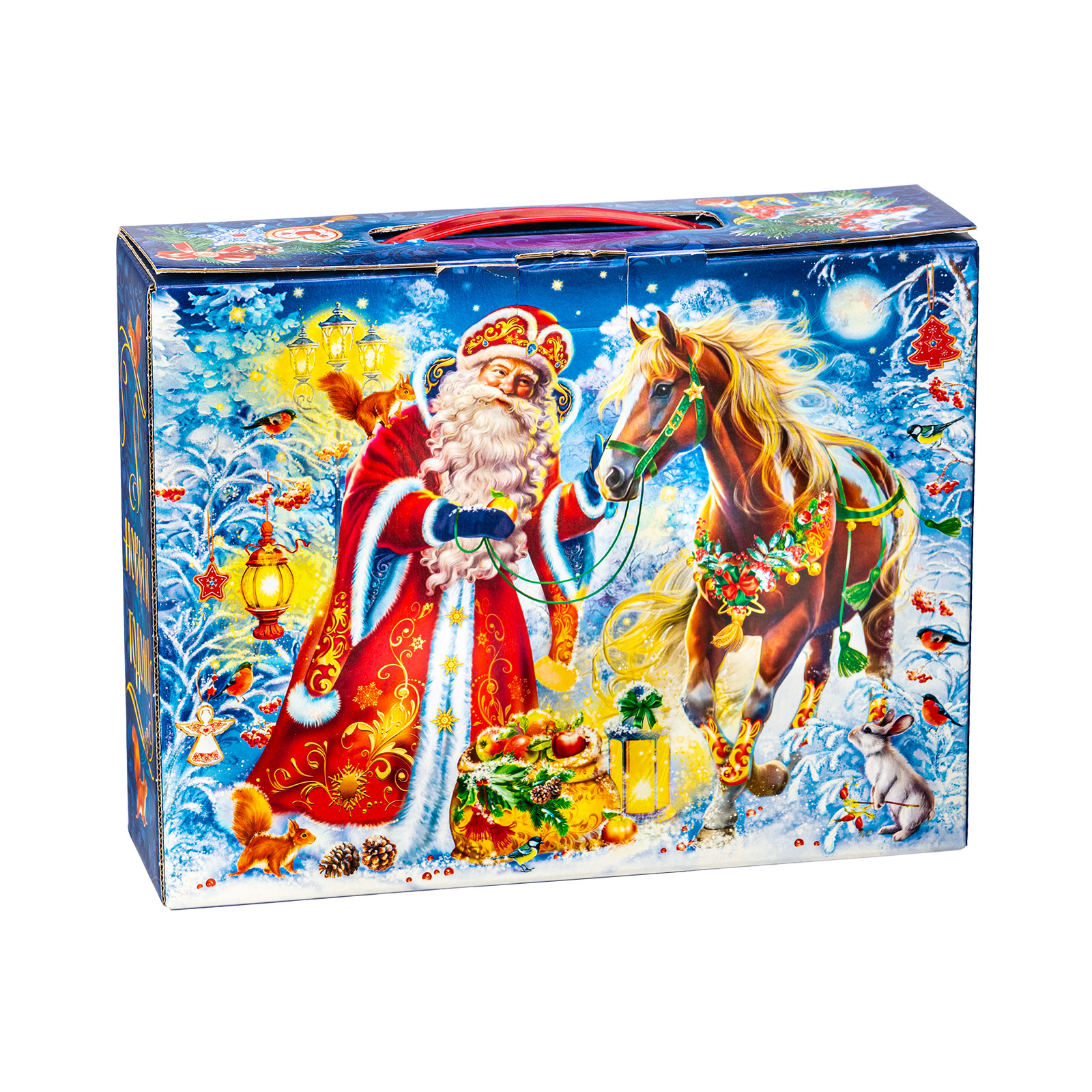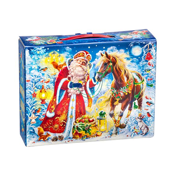 Сладкий новогодний подарок в виде домика – «Полярная сказка», высотой 20 см. На упаковке этого замечательного подарка изображены полярный медведи – мама медведица в розовом шарфе и сын медвежонок в синем свитере. Она стоят на фоне разноцветного леса над котором изображен фейерверк. Внутри подарка находится разнообразный кондитерский набор весом 700 грамм. Подарок наполнен кондитерскими изделиями известных кондитерских фабрик, которые подойдут на любой вкус. Данный подарок хорошо подойдет для вручения коллегам, друзьям, близким родственникам на долгожданный праздник года. Своим прекрасным дизайном он порадует и поднимет настроение своего получателя.
