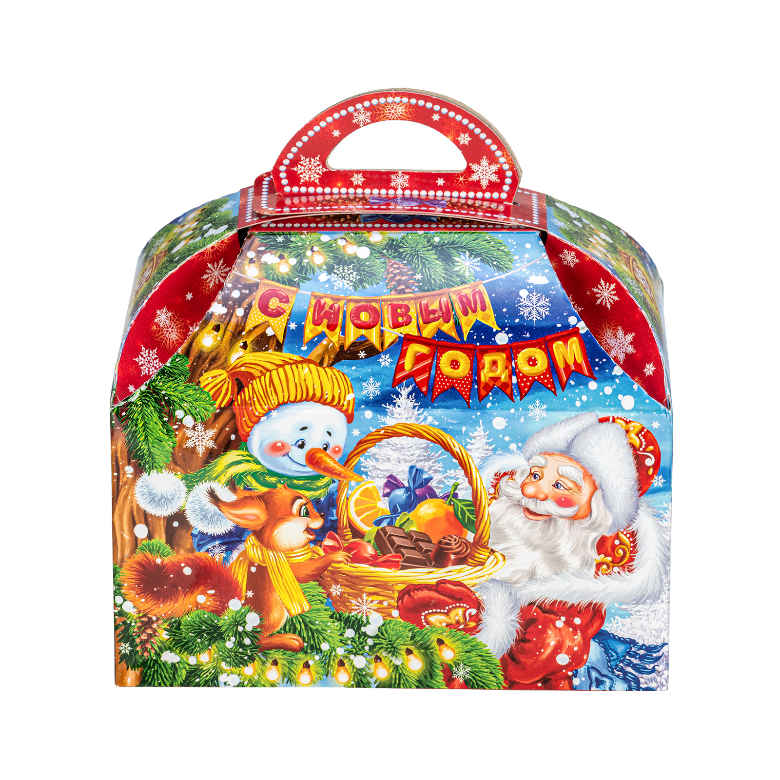 Подарите своим родным и близким безграничную радость вместе с новогодним сладким подарком “Сундук лакомств”. Этот подарочный набор представляет собой небольшую картонную коробочку в форме сундука с удобной ручкой сверху. На упаковке нанесен очень яркий привлекательный рисунок, на котором Дед Мороз и его друзья обмениваются подарками и веселыми улыбками. В состав подарка входит 900 грамм вкусных и разнообразных лакомств от ведущих кондитерских предприятий, а также небольшой памятный сувенир в виде символа наступающего года.